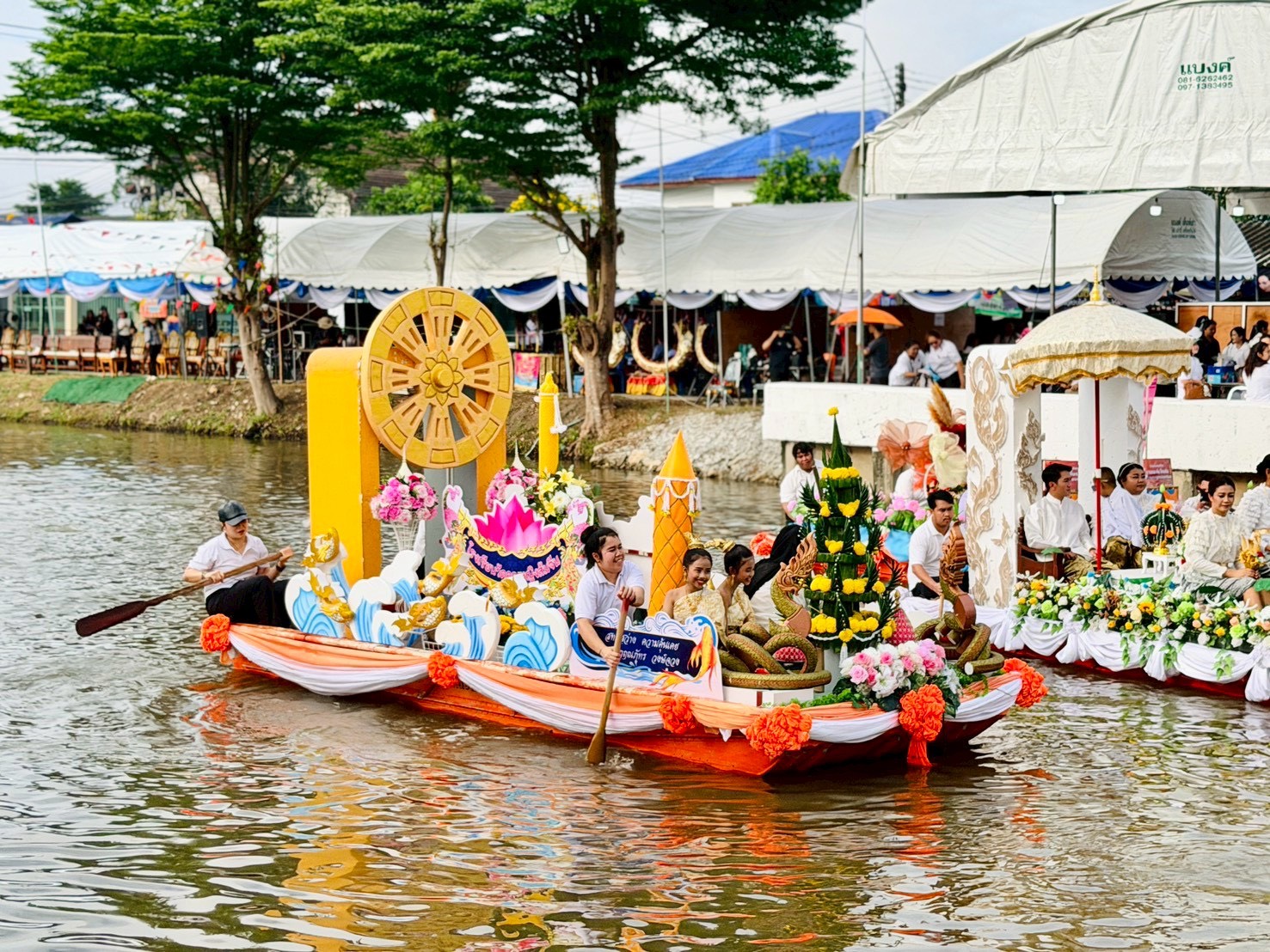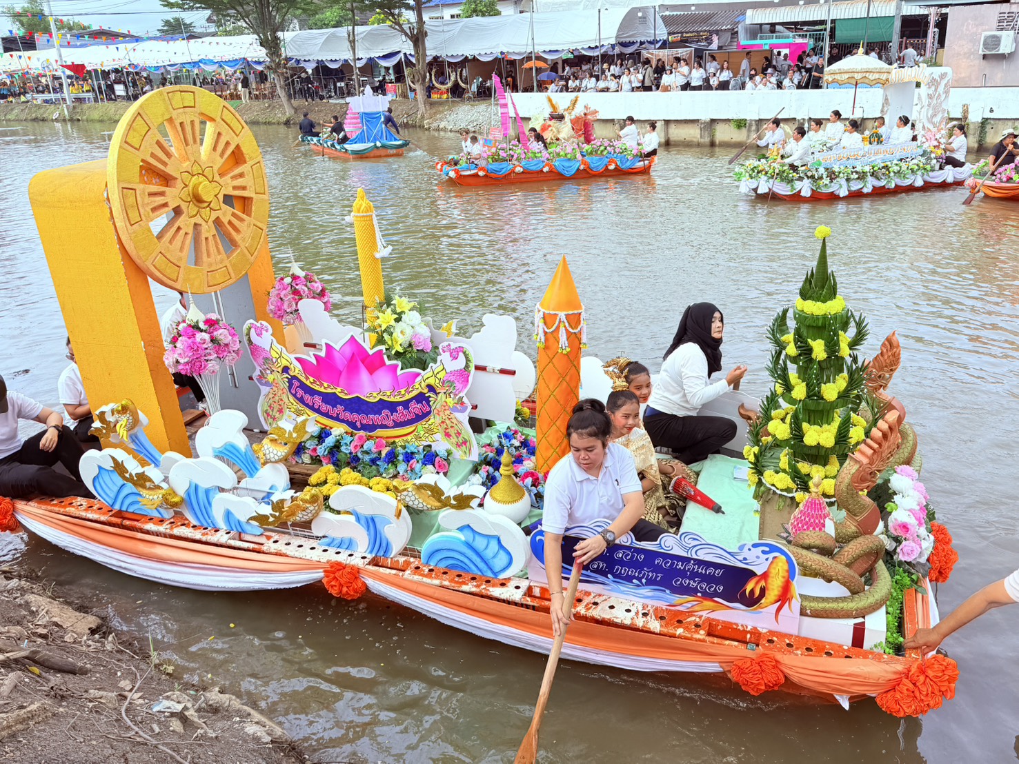 วันที่ 1 พฤศจิกายน 2568 ดร.อรอุมา รุ่งเรืองวณิชกุล ผู้อำนวยการโรงเรียนวัดคุณหญิงส้มจีน มิตรภาพที่ 64 พร้อมด้วยคณะผู้บริหารและคณะครู ร่วมกิจกรรม โครงการส่งเสริมวัฒนธรรมประเพณีท้องถิ่น การแข่งขันเรือพายท้องถิ่น เทศบาลเมืองท่าโขลง จ.ปทุมธานี โดยเข้าร่วมแต่งเรือประเพณีท้องถิ่น ในหัวข้อประเพณีแห่เทียนเข้าพรรษา เพื่อร่วมแสดงในงานพิธีเปิดกิจกรรมโครงการส่งเสริมวัฒนธรรมประเพณีท้องถิ่น การแข่งขันเรือพายท้องถิ่น เทศบาลเมืองท่าโขลง ซึ่งจัดขึ้นเป็นประจำทุกปี ณ มัสยิดลำสนุ่น ตำบลคลองสอง อำเภอคลองหลวง จังหวัดปทุมธานี และมีโรงเรียนในเขตพื้นที่การดูแลของเทศบาลเมืองท่าโขลงเข้าร่วมงาน