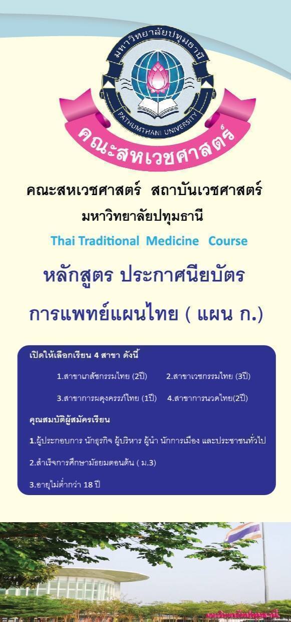 มหาวิทยาลัยปทุมธานี รับสมัครนักศึกษาคณะสหเวชศาสตร์ การแพทย์แผนไทย ก