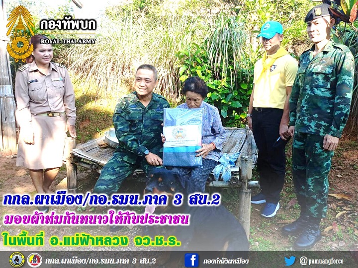กองกำลังผาเมือง/กองอำนวยการรักษาความมั่นคงภายในภาค 3 ส่วนแยก 2 มอบผ้าห่มกันหนาวให้กับประชาชน ในพื้นที่ อ.แม่ฟ้าหลวง จว.ช.ร.