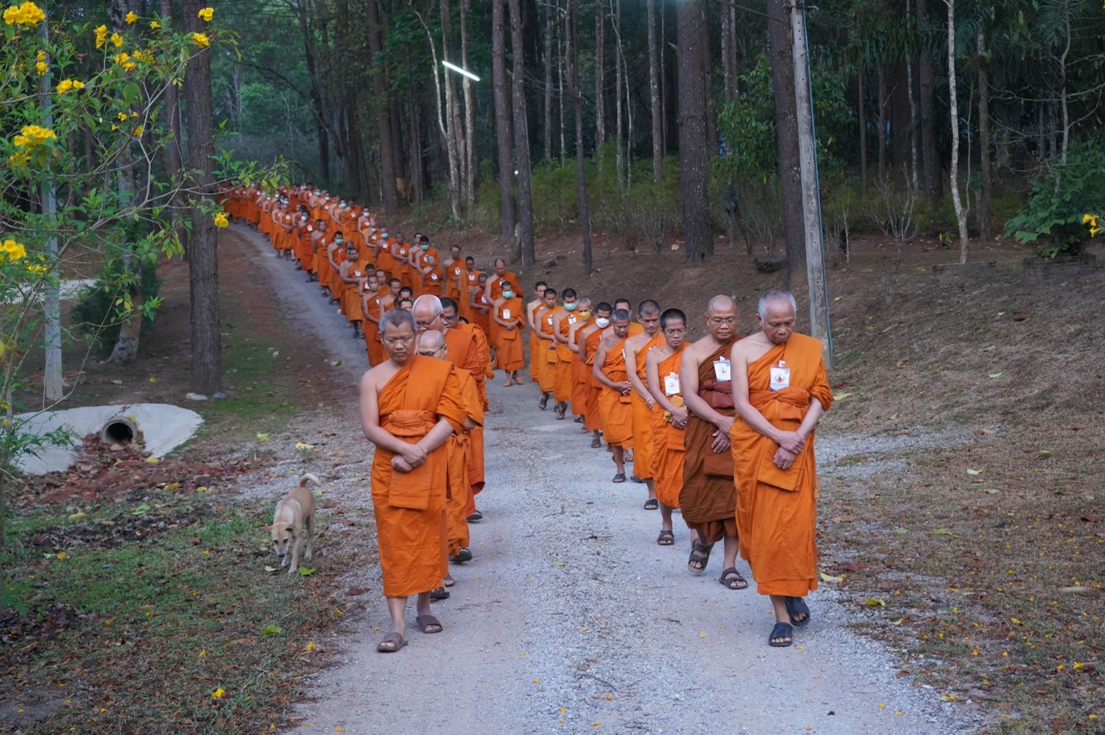 รองอธิการบดีฝ่ายกิจการต่างประเทศ ปฏิบัติกรรมฐานเดินจงกรมร่วมกับพระวิปัสสนาจารย์และลูกศิษย์ผู้เข้าอบรมพระธรรมทูตสายต่างประเทศ