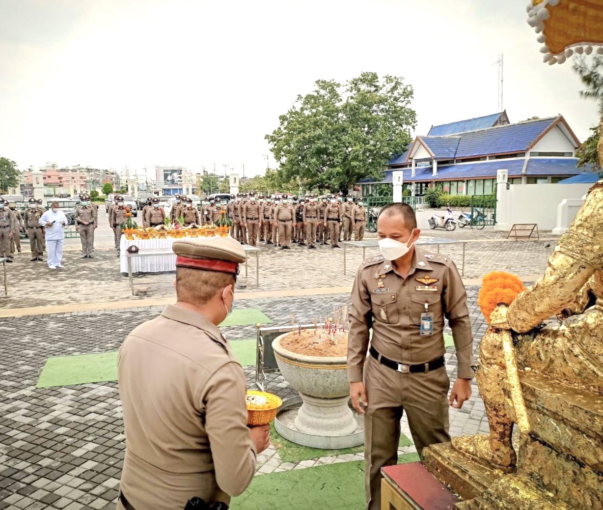 พ.ต.อ.เอกชัย ศรีเมือง ผกก.สภ.ดอนเจดีย์ พร้อมข้าราชการตำรวจในสังกัดร่วมกิจกรรมวางพวงมาลาถวายราชสักการะเนื่องในวันปิยมหาราช